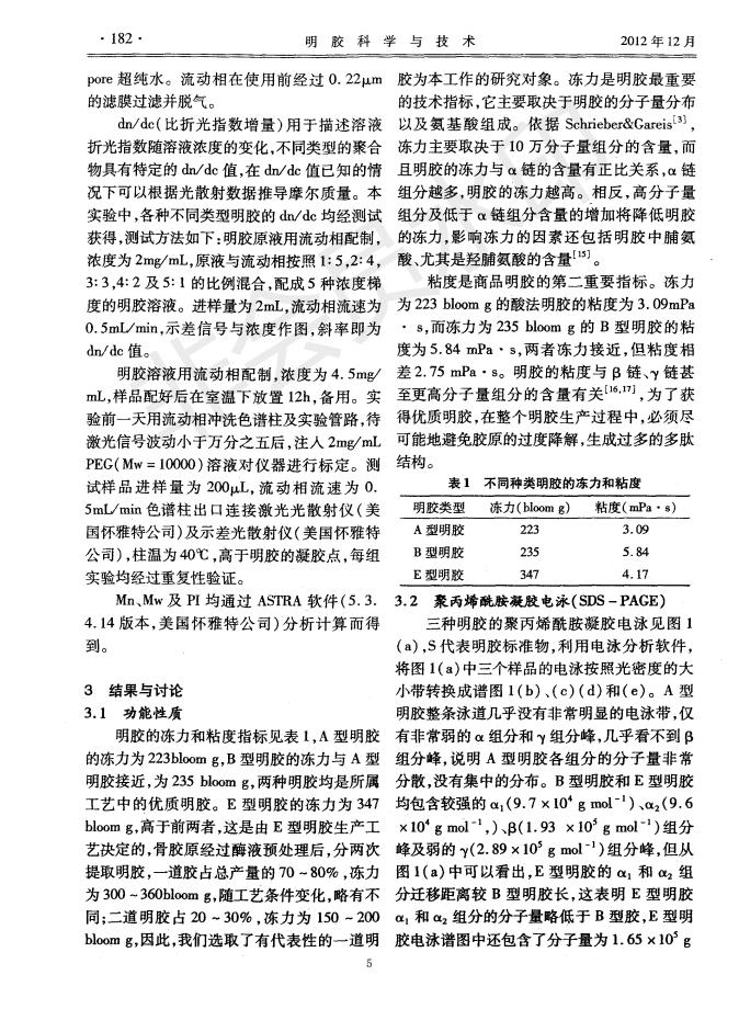 Analysis and Distribution of Molecular Weight of Acid Method Gelatin, Alkaline Method Gelatin and En