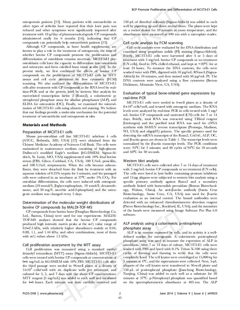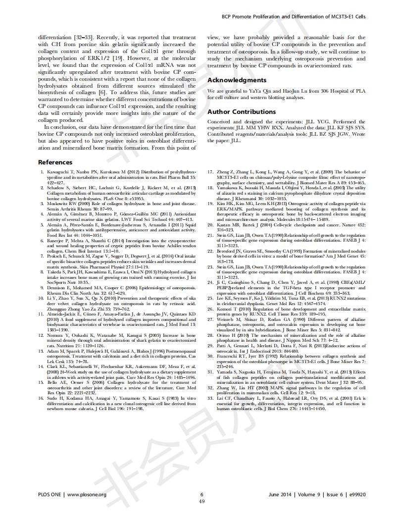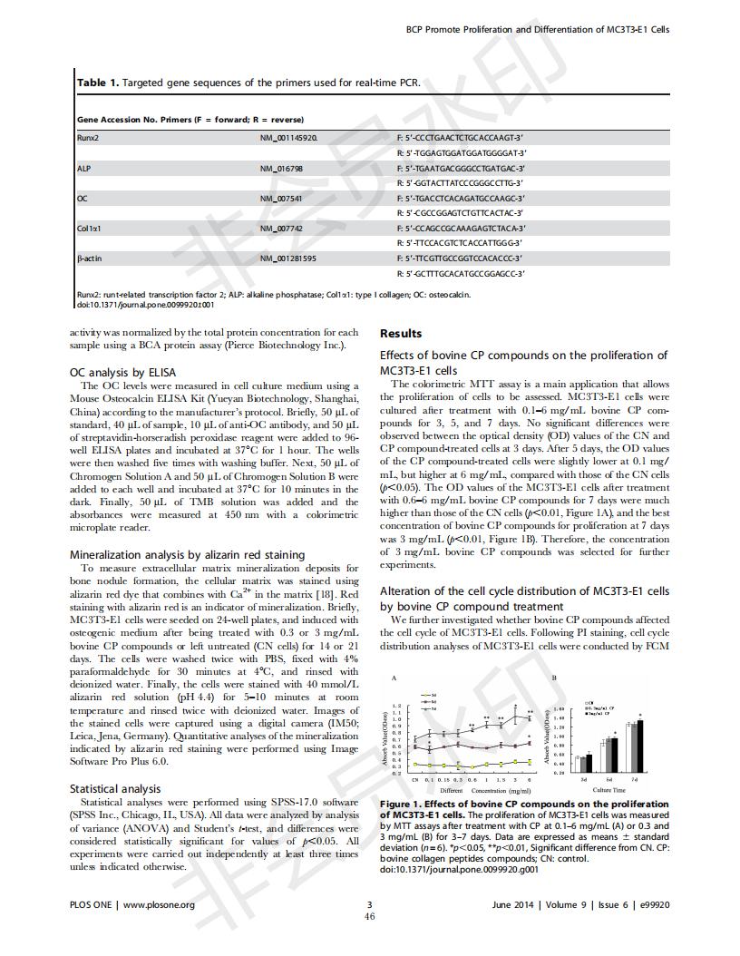 Bovine collagen peptide promotes the proliferation and differentiation of MC3T3-E1 osteoblasts