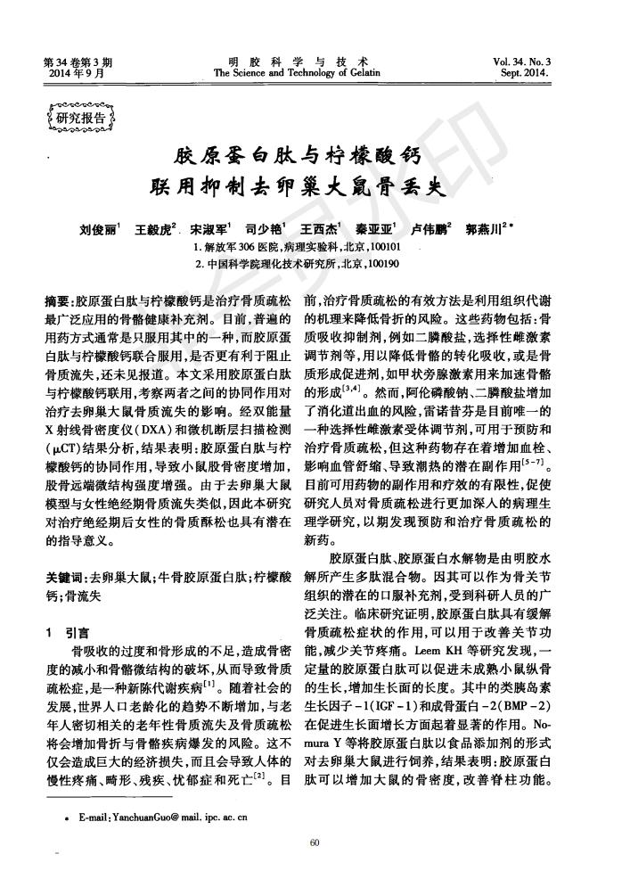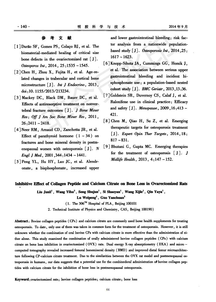 Preventive and therapeutic effects of collagen peptide and calcium citrate on bone loss in ovariecto