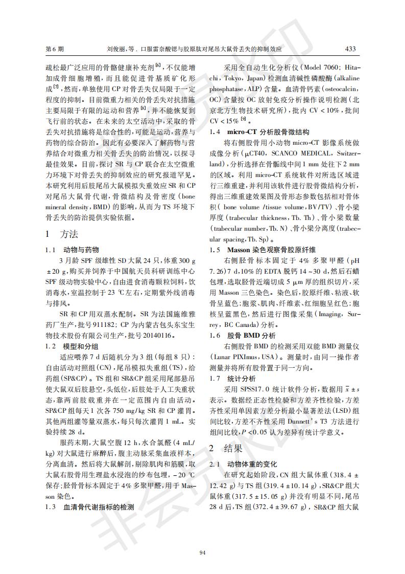 Inhibitory effect of strontium ranelate and collagen peptide on bone loss in tail suspended rats