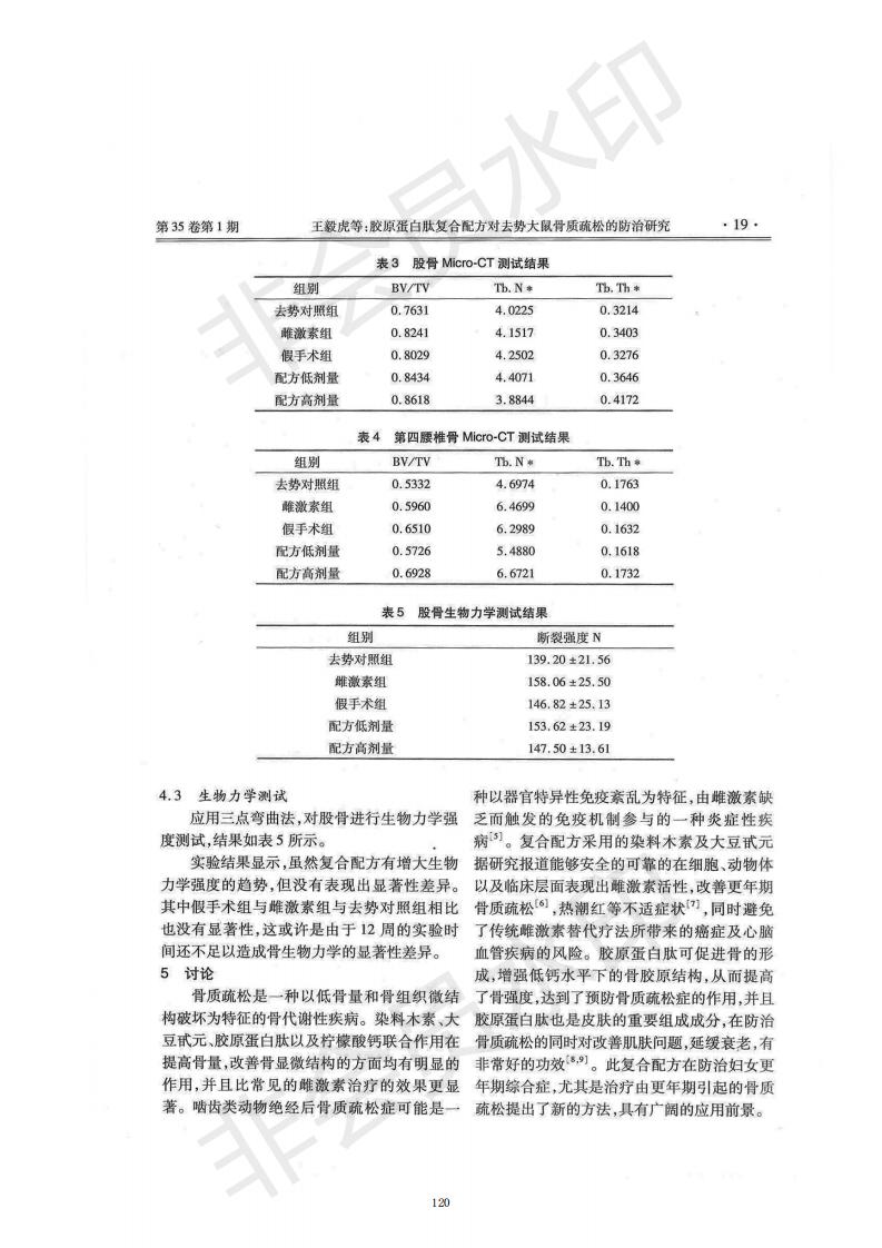 Study on the prevention and treatment of collagen peptide compound formula on osteoporosis in ovarie