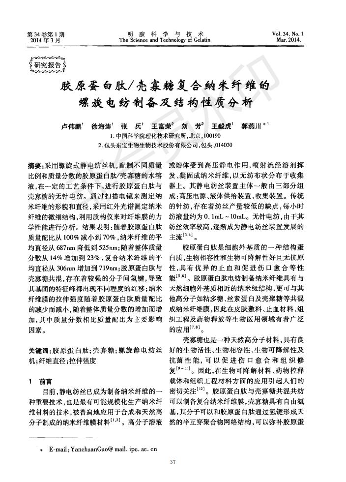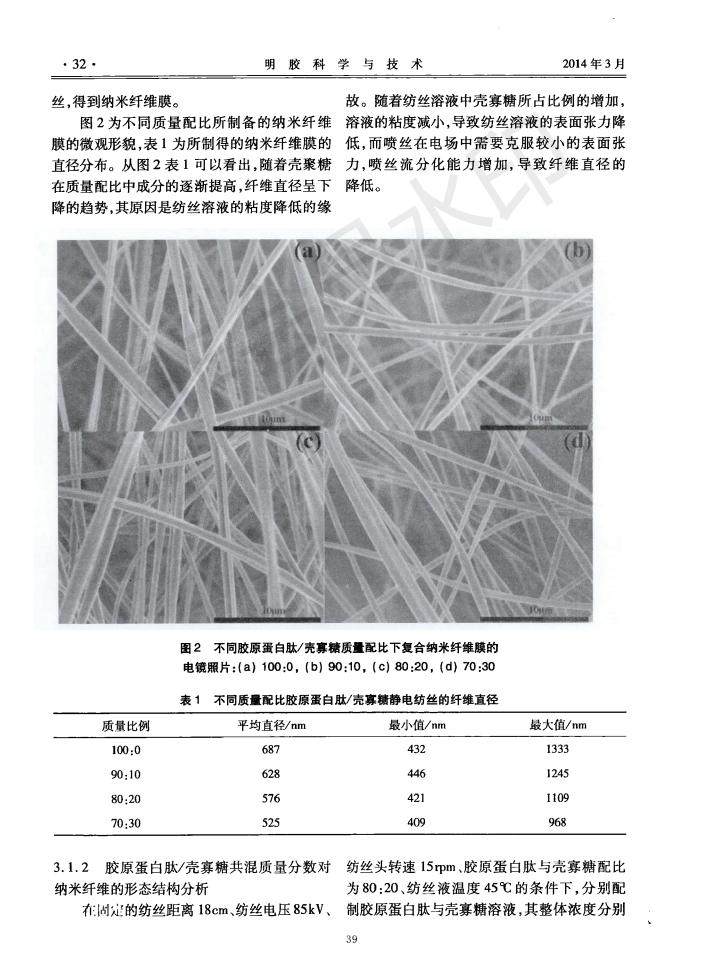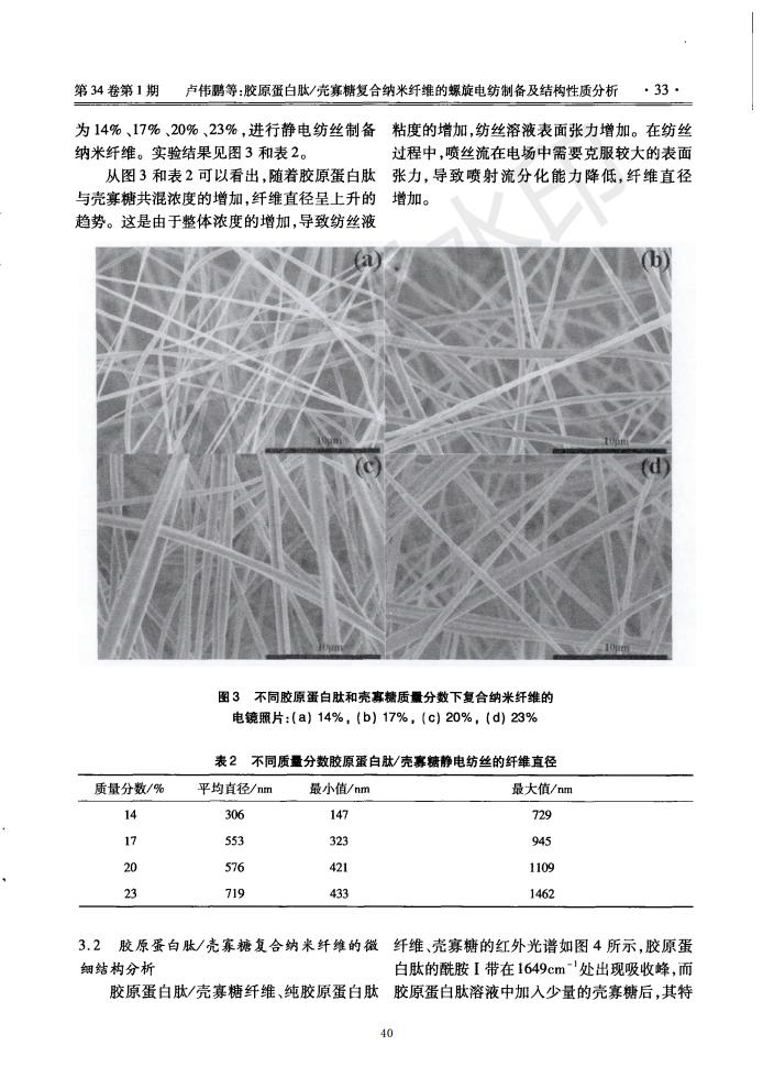 胶原卵白肽/壳寡糖复合纳米纤维的螺旋电纺制备及结构性子剖析