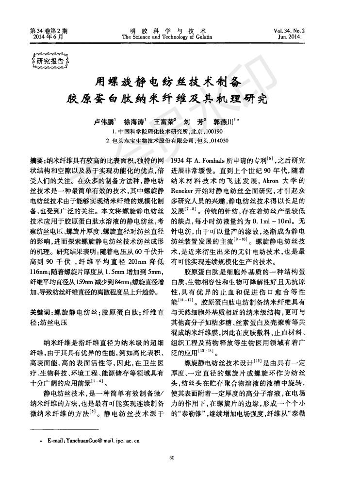 用螺旋静电纺丝手艺制备胶原卵白肽纳米纤维及其机理研究