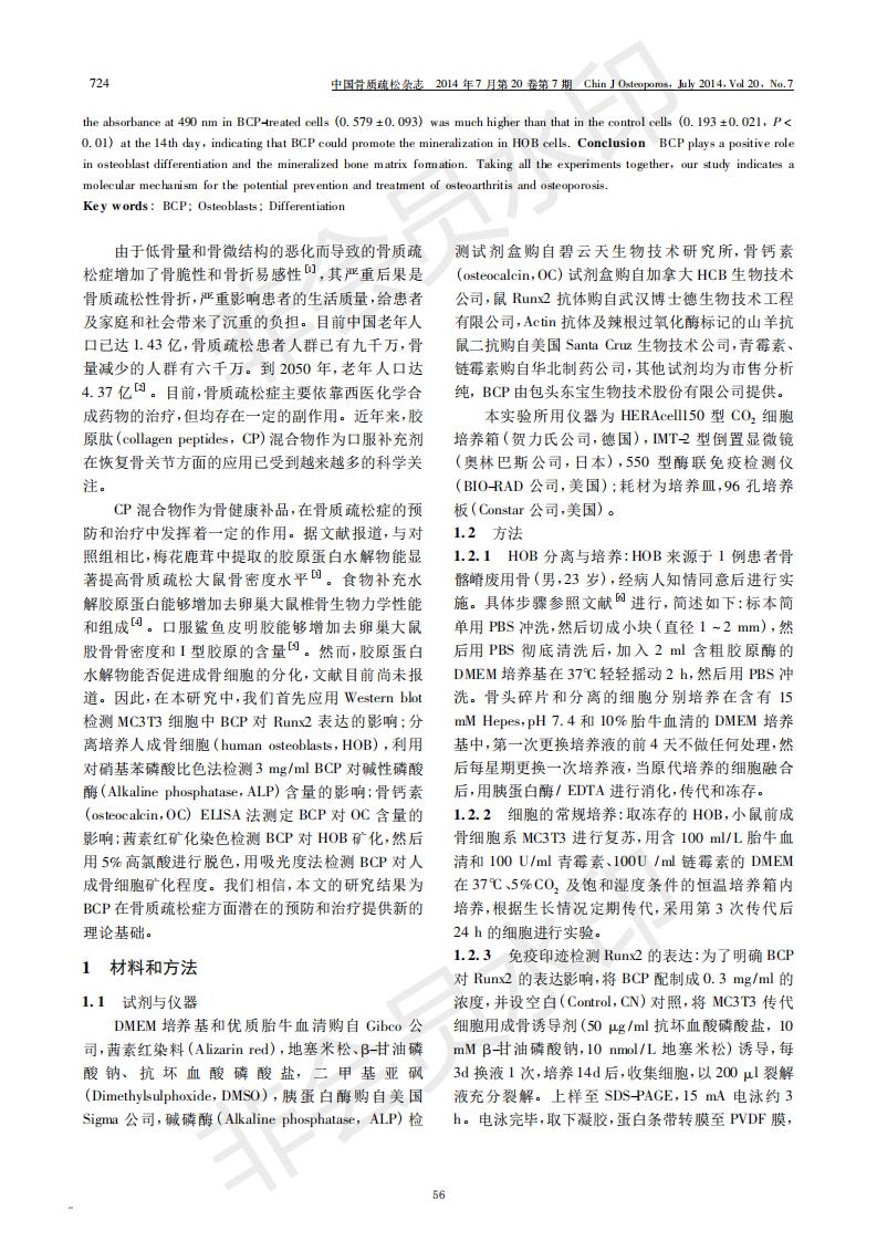 牛骨胶原肽对成骨细胞分解的影响