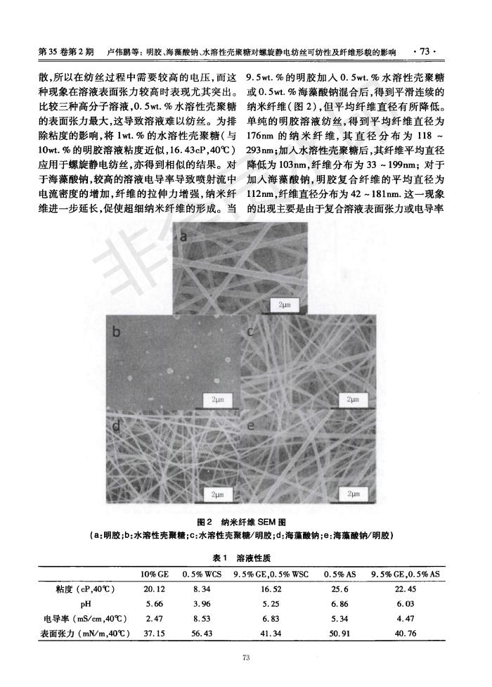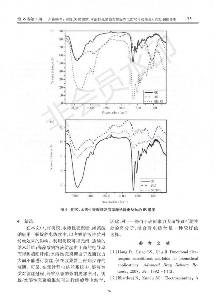 明胶、海藻酸钠、水溶性壳聚糖对螺旋静电纺丝可纺性及纤维形貌的影响