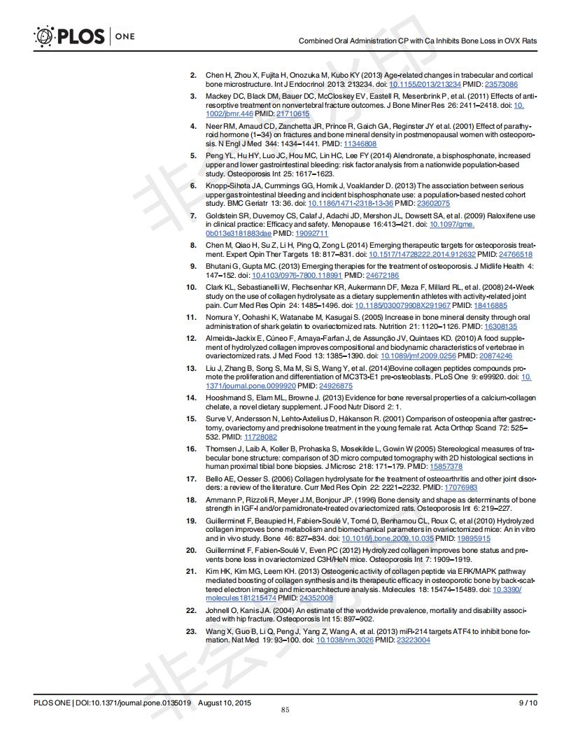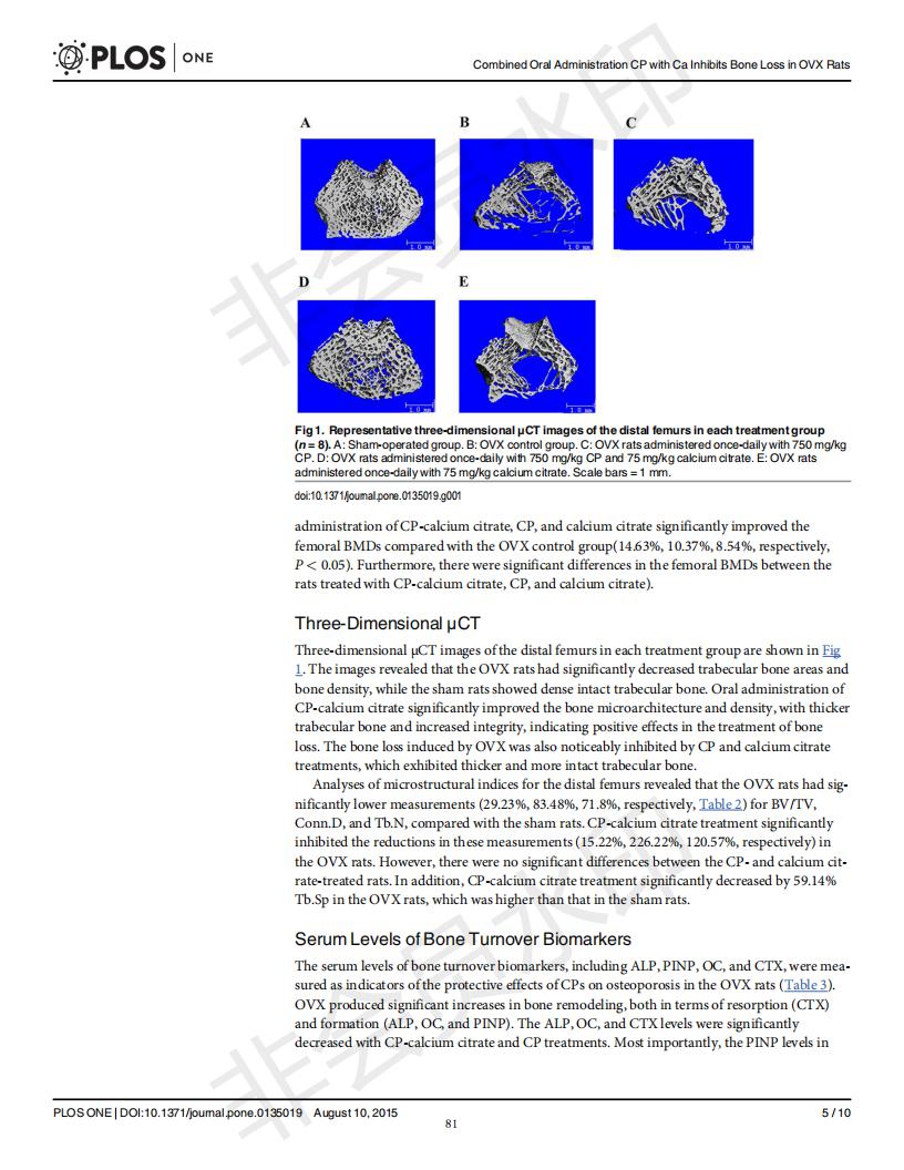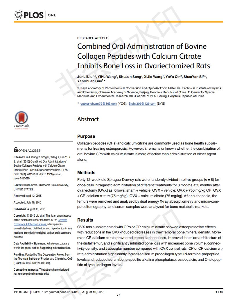 口服骨胶原肽于柠檬酸钙抑制去卵巢大鼠骨丧失