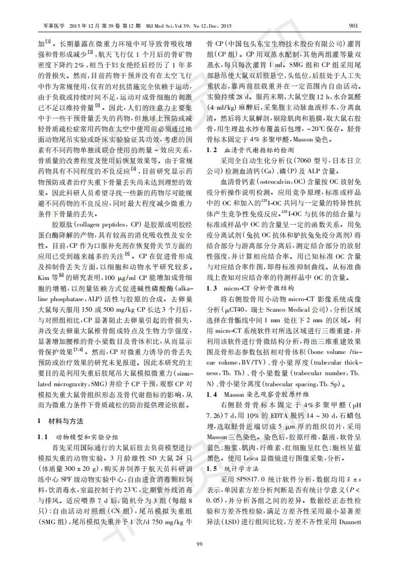 口服牛骨胶原肽对模拟微重力条件下大鼠股骨微结构的改善效应