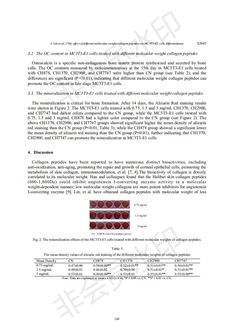 差别分子量胶原卵白肽对MC3T3-E1细胞分解的影响